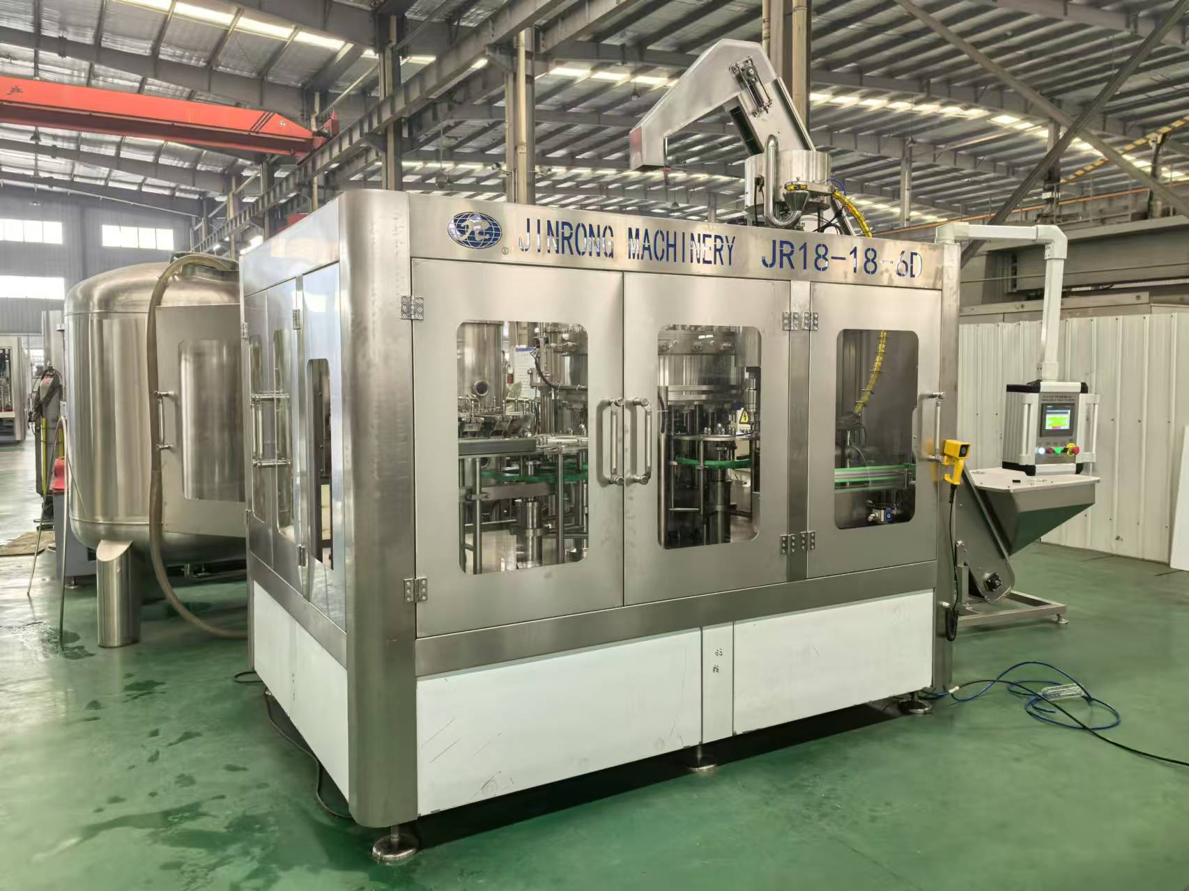 金榮飲料機(jī)械廠家制造供應(yīng)的全套飲料生產(chǎn)線、果汁生產(chǎn)線、碳酸飲料生產(chǎn)線、小瓶礦泉水灌裝設(shè)備、大瓶水生產(chǎn)線、桶裝水生產(chǎn)線、純凈水灌裝機(jī)設(shè)備、瓶裝礦泉水灌裝生產(chǎn)線、易拉罐啤酒灌裝機(jī)等系列產(chǎn)品主要運(yùn)用在純凈水,礦泉水,果汁,茶,熱灌裝飲料,功能飲料,含汽飲料,碳酸飲料,啤酒等液體飲料灌裝生產(chǎn)。其供應(yīng)的灌裝生產(chǎn)線可配套全自動吹瓶機(jī)、水處理設(shè)備、前處理設(shè)備、飲料殺菌設(shè)備、貼標(biāo)機(jī)、包裝機(jī)等相關(guān)配套機(jī)械設(shè)備。金榮多年來的設(shè)備研發(fā)和制造經(jīng)驗,讓金榮機(jī)械為飲料生產(chǎn)企業(yè)和水廠等提供了穩(wěn)定的全套灌裝生產(chǎn)線設(shè)備。